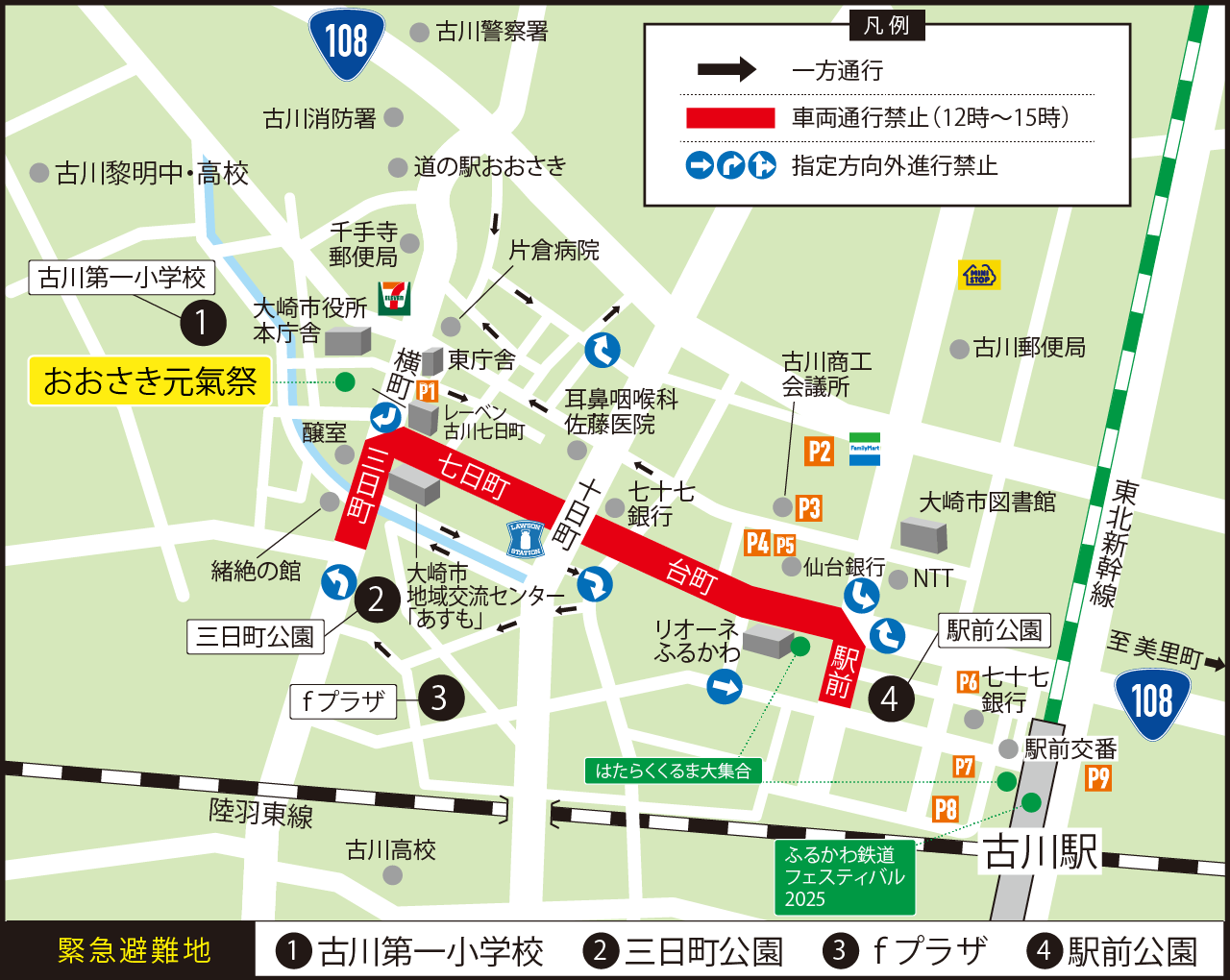 当日は大崎市古川の中心市街地を『大名行列』が通るため、交通規制がしかれます。 (12時~15時) |