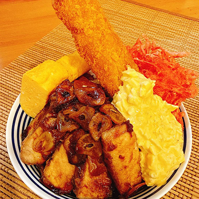 当店No.1人気の厚切り豚ロース生姜焼きとNo.2人気の鶏の天ぷら