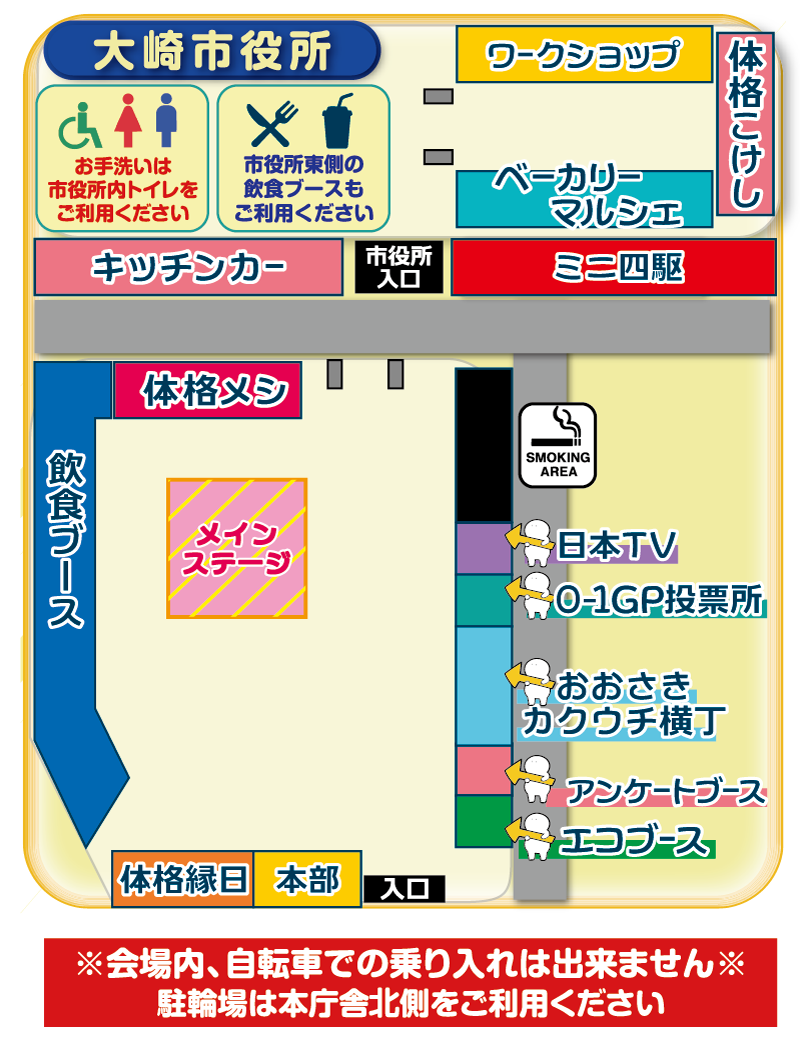当日は専用駐車場を設けておりません、公共交通機関をご利用の上ご来場ください。